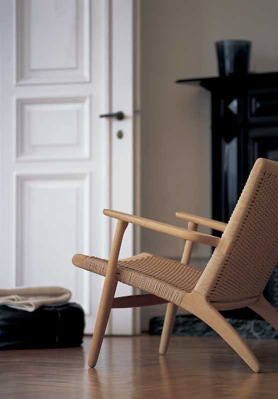 Estructura en madera de Fresno, asiento y respaldo encordado en fibra natural.